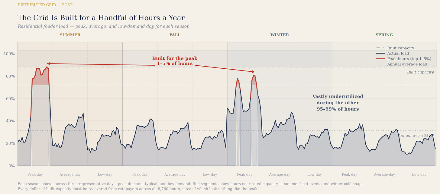 A system with 30 to 40% average utilization in residential service territories, built for a peak that occurs a handful of days per year: and of those days, only a handful of hours